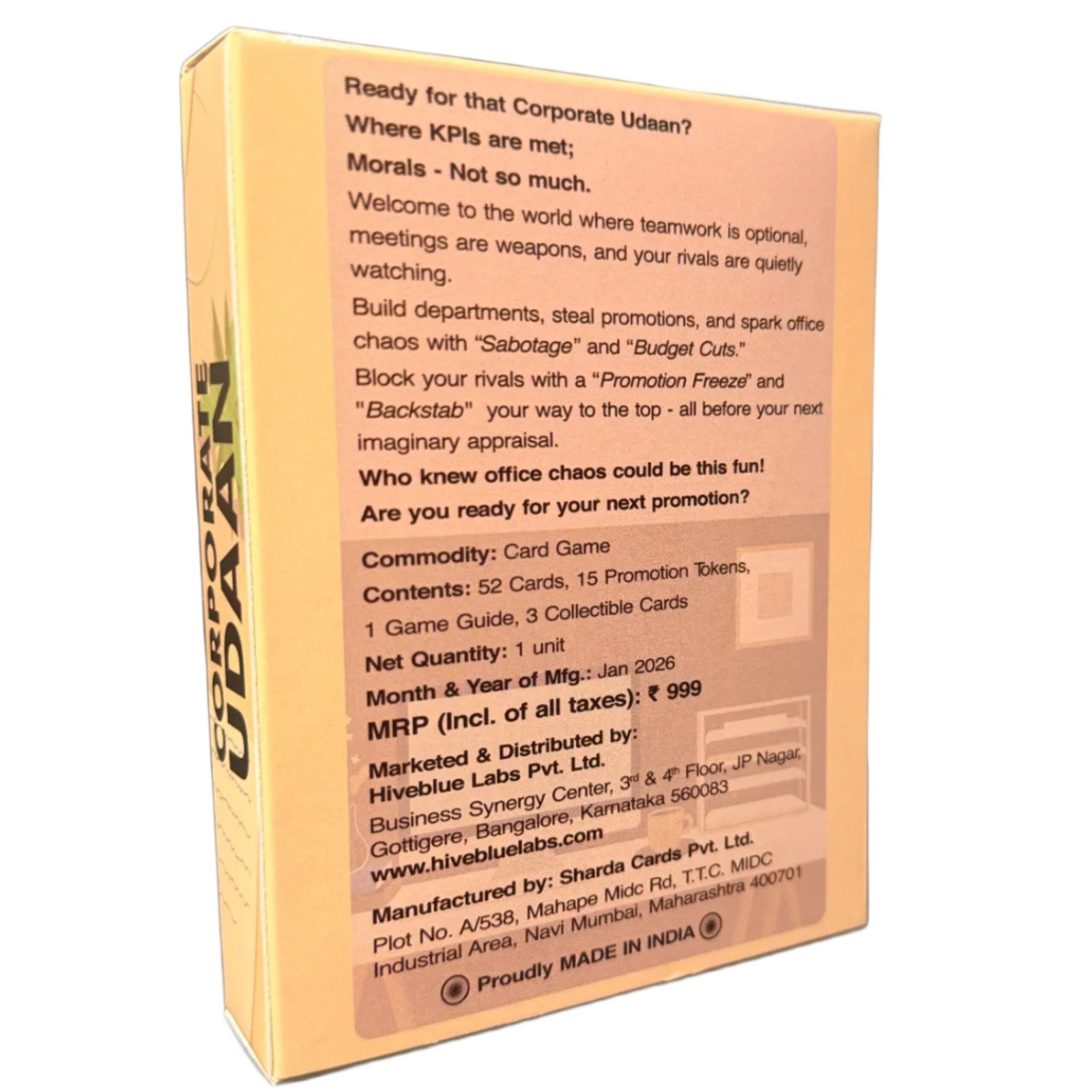 With witty cards, unpredictable twists, and clever strategies, Corporate Udaan is perfect for friends, families, and co-workers who want to laugh, plot, and outsmart each other. Whether you’re climbing the corporate ladder or pulling others down (all in good fun!), this game guarantees endless entertainment.